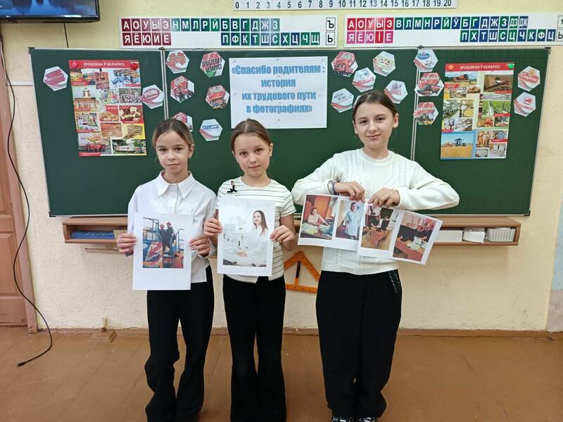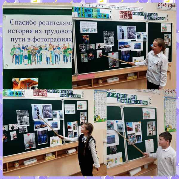 В последний день «Трудом славен человек» во всех классах прошла фотовыставка «Спасибо родителям: история их трудового пути в фотографиях». Ребята активно делились информацией о профессиях своих родителей.
